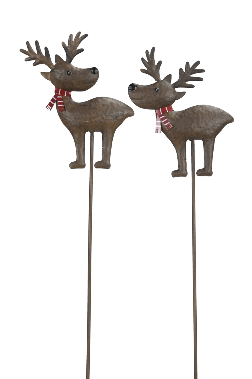 Piquet Renne avec Echarpe en Métal Marron Antique 20×2,5xH118cm, 2 Modèles au Choix
