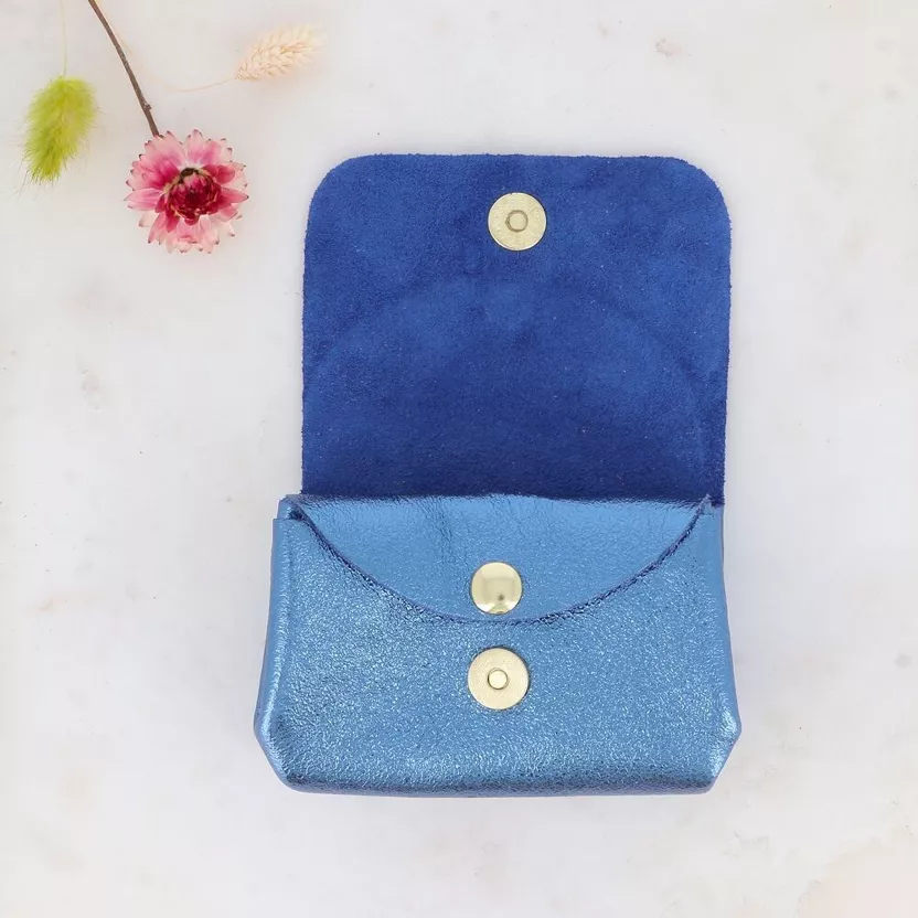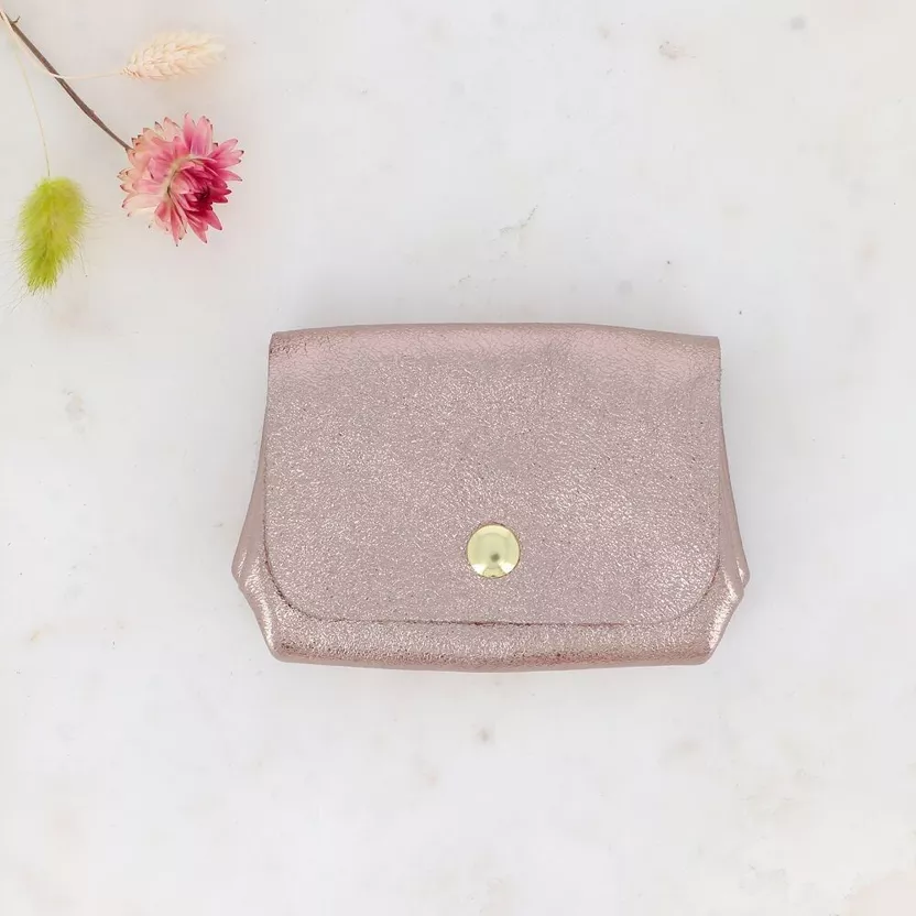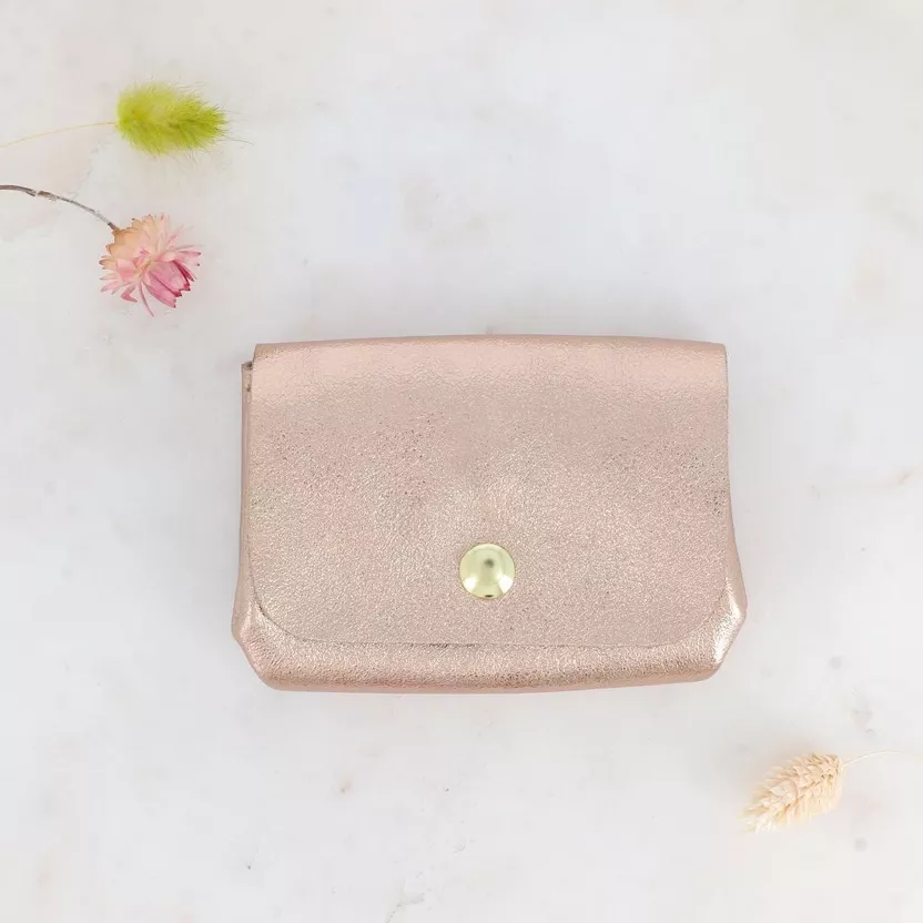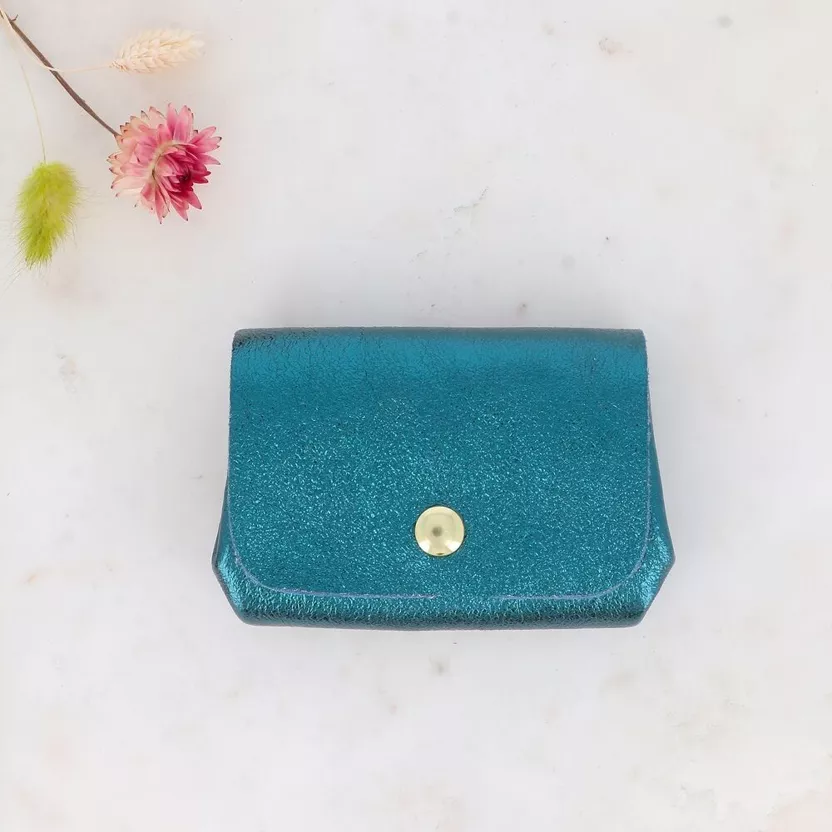 Porte Monnaie « Bruxelles » 10x7cm en Cuir de Vachette, 2 Boutons en Laiton Aimanté, 3 compartiments, Divers Coloris