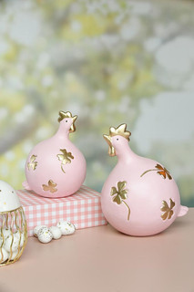 Poule Rose en Terracotta aver Trèfle Doré 18x15x21cm