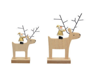 Renne en Bois Naturel avec Santa Lilian 11x4x14cm