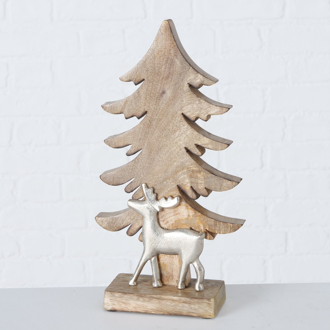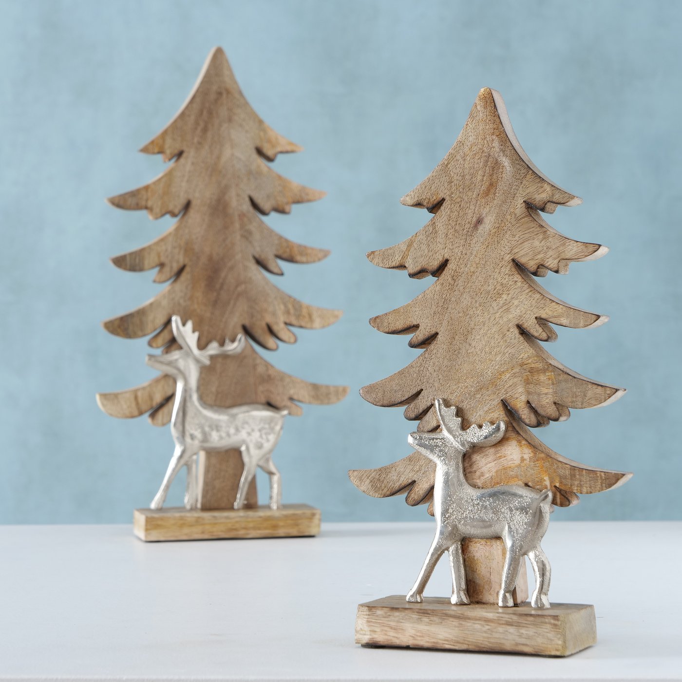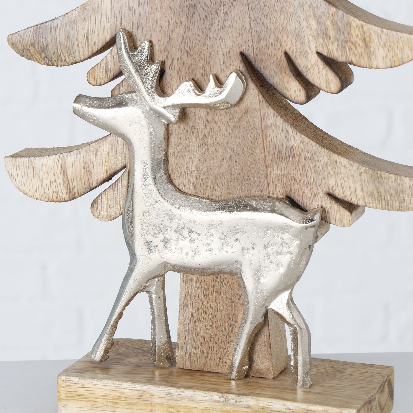 Sapin « Taxel » à Poser en Bois de Manguier avec Cerf en Alu H.32cm