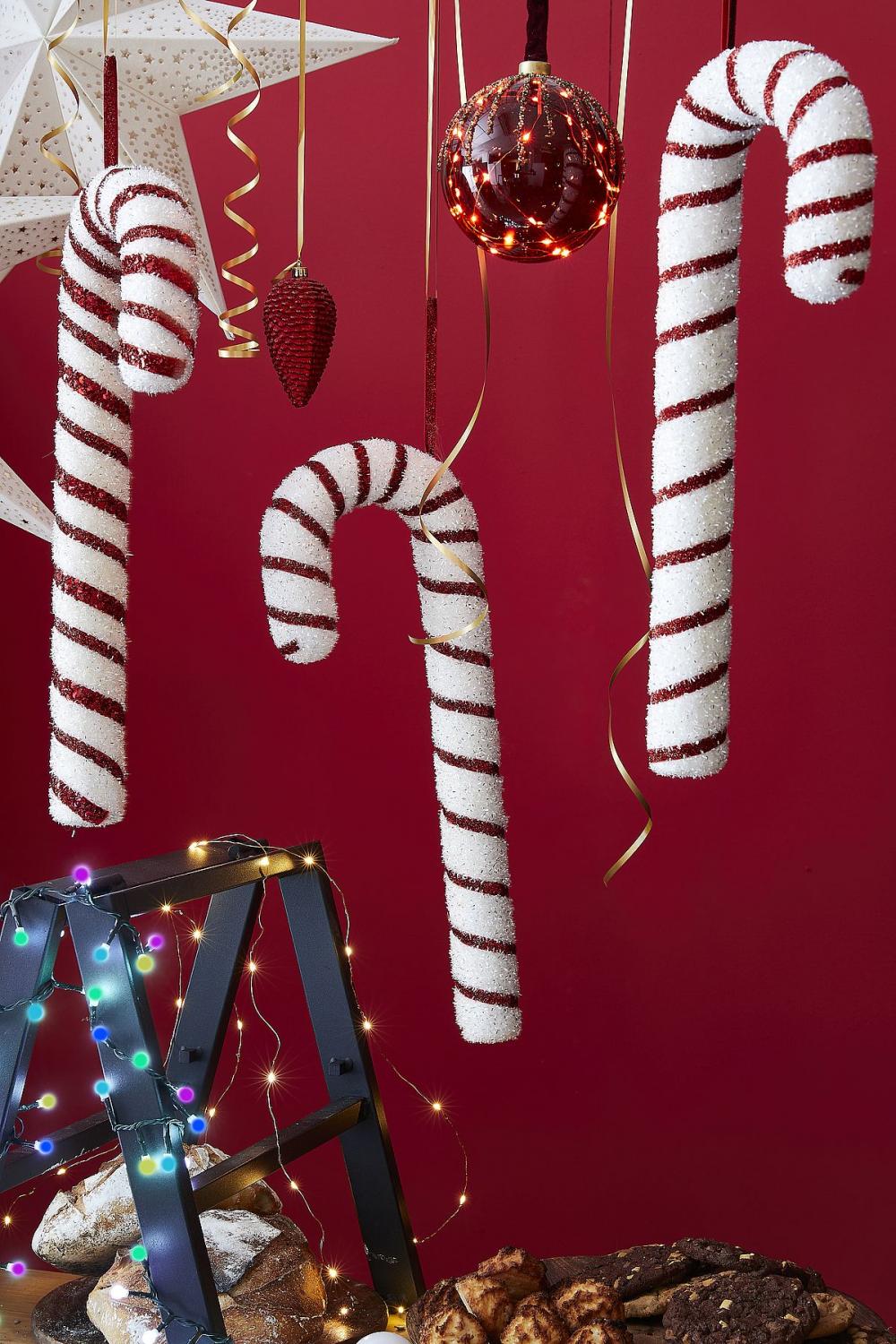 Ce sucre d’orge en mousse se prête à toutes les utilisations en déco de fête : partout, vous pourrez le suspendre, l’accrocher ou le planter au gré de vos besoins.