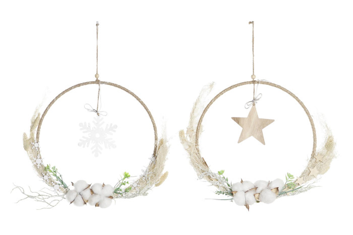 Suspension LED, Cercle Fleurs de Coton avec Étoile ou Flocon au Choix 30x2x30cm