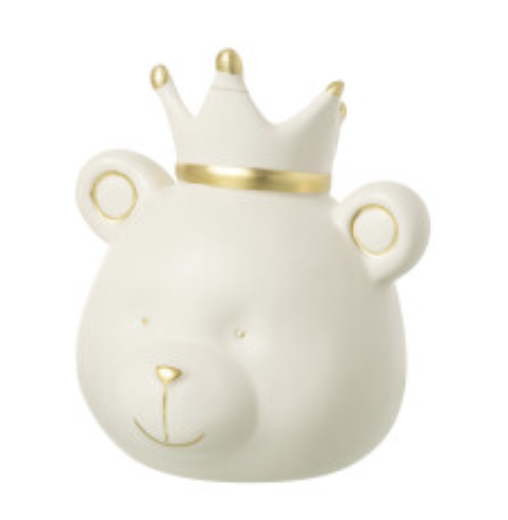 Tirelire Ours Couronné en Céramique Blanche et Dorée 12,5x14x15cm