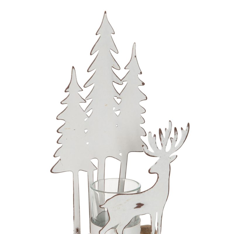 Photophore Hivernal en Bois et Métal Blanc 11x8x26,5cm