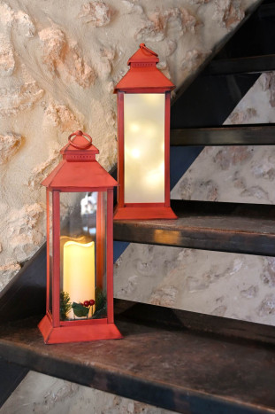 Lanterne LED en Métal Rouge ou Blanc au Choix 3AA, 14,5x14,5x39cm