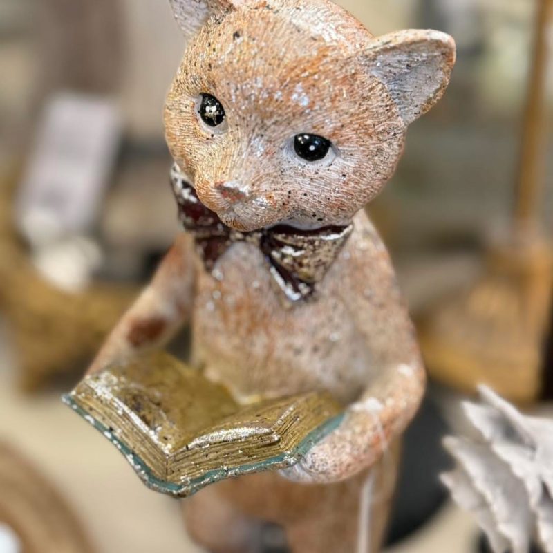 Figurine décorative Chat 27 cm Beige et Or