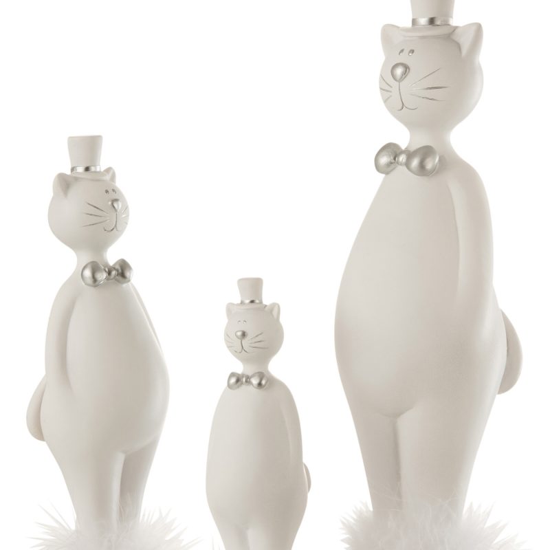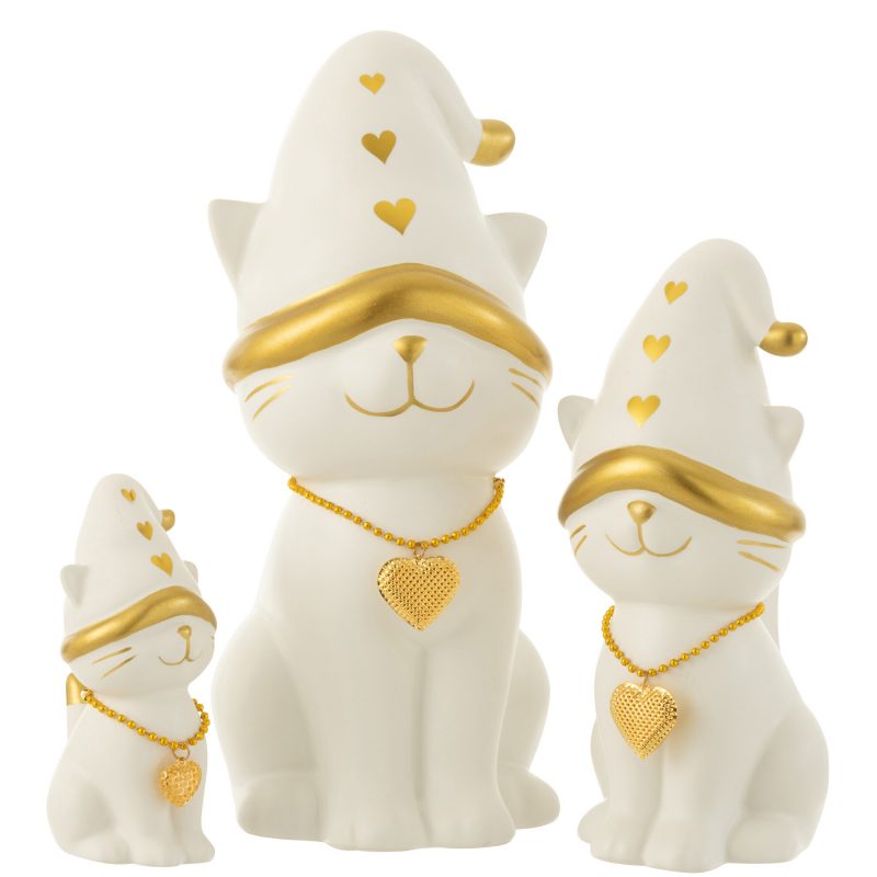 Chat Collier Coeur avec Chapeau, en Dolomite Blanc et Or 16,2×13,6×29,4cm